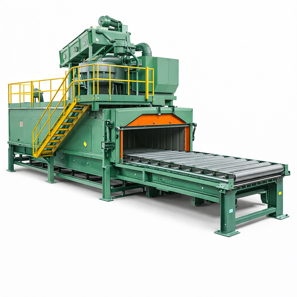 La grenailleuse avec convoyeur à rouleaux permet le nettoyage et la préparation de surfaces métalliques en continu. Les pièces sont transportées automatiquement à travers la cabine de traitement, garantissant une finition homogène. Robuste et performante, elle est idéale pour les applications industrielles exigeantes.